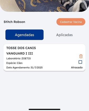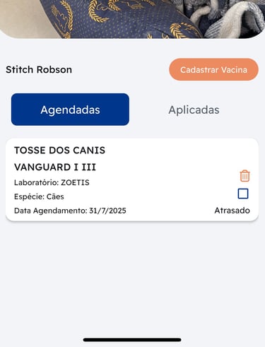 O aplicativo ajuda a gerenciar a saúde do seu pet, lembrando sobre vacinas e consultas.